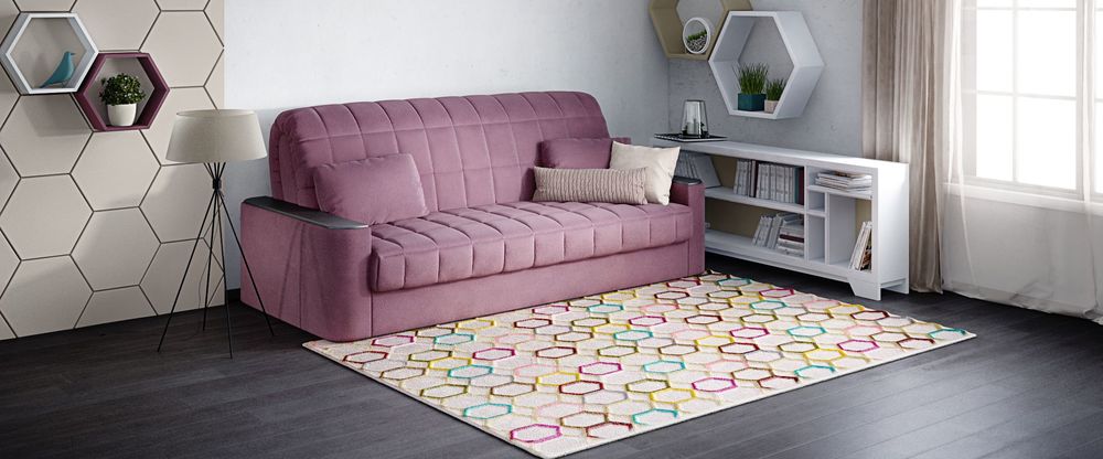 Хороший универсальный диван, средний по удобству для сидения, но хороший для сна. Идеальное решение для гостевой комнаты.