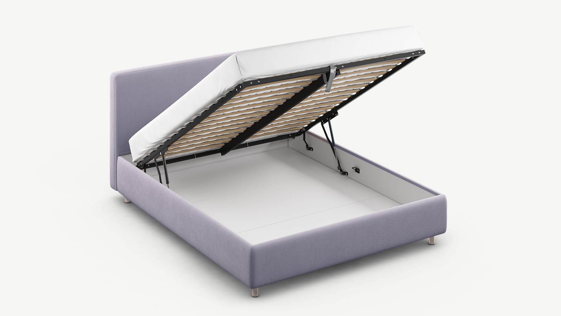 • Скрытая под основанием вместительная емкость без внутренних перегородок позволяет использовать всю площадь подкроватного пространства для хранения вещей.
