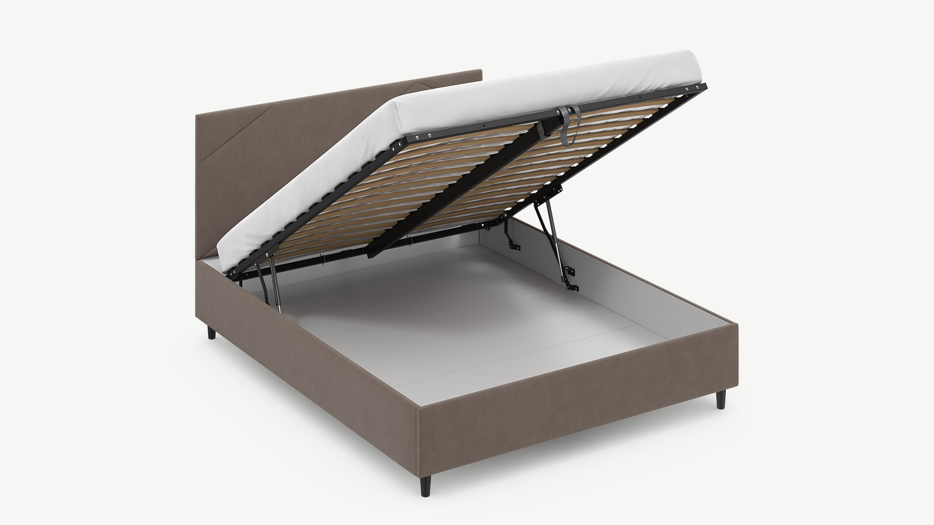 • Скрытая под основанием вместительная емкость без внутренних перегородок позволяет использовать всю площадь подкроватного пространства для хранения вещей.