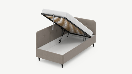 • Скрытая под основанием вместительная емкость без внутренних перегородок позволяет использовать всю площадь подкроватного пространства для хранения вещей.