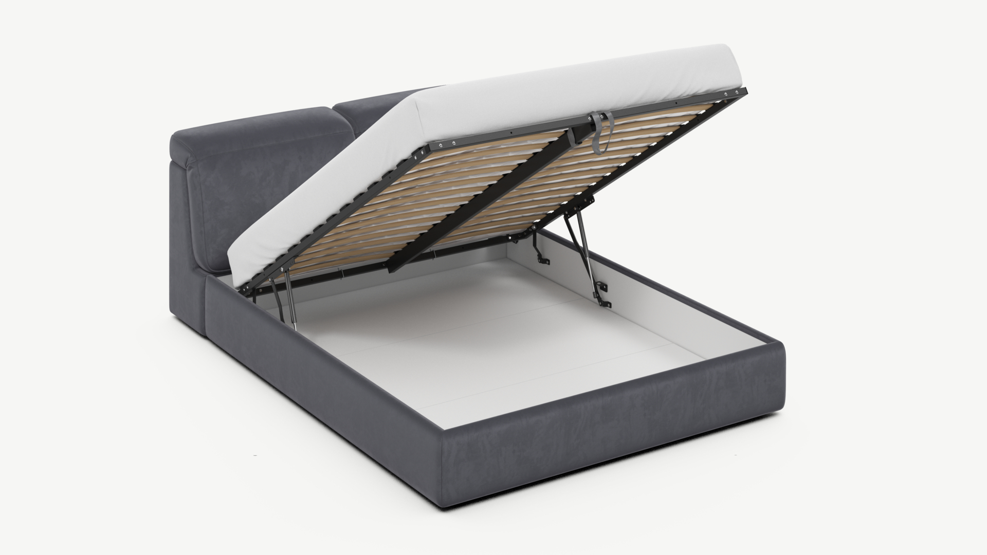 • Скрытая под основанием вместительная емкость без внутренних перегородок позволяет использовать всю площадь подкроватного пространства для хранения вещей.